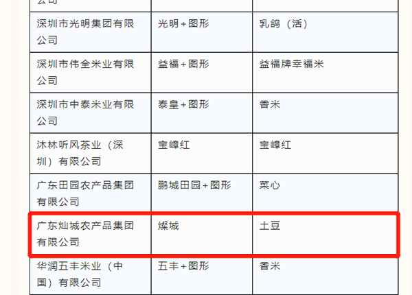 廣東燦城農(nóng)產(chǎn)品集團(tuán)有限公司上榜入選2個產(chǎn)品!