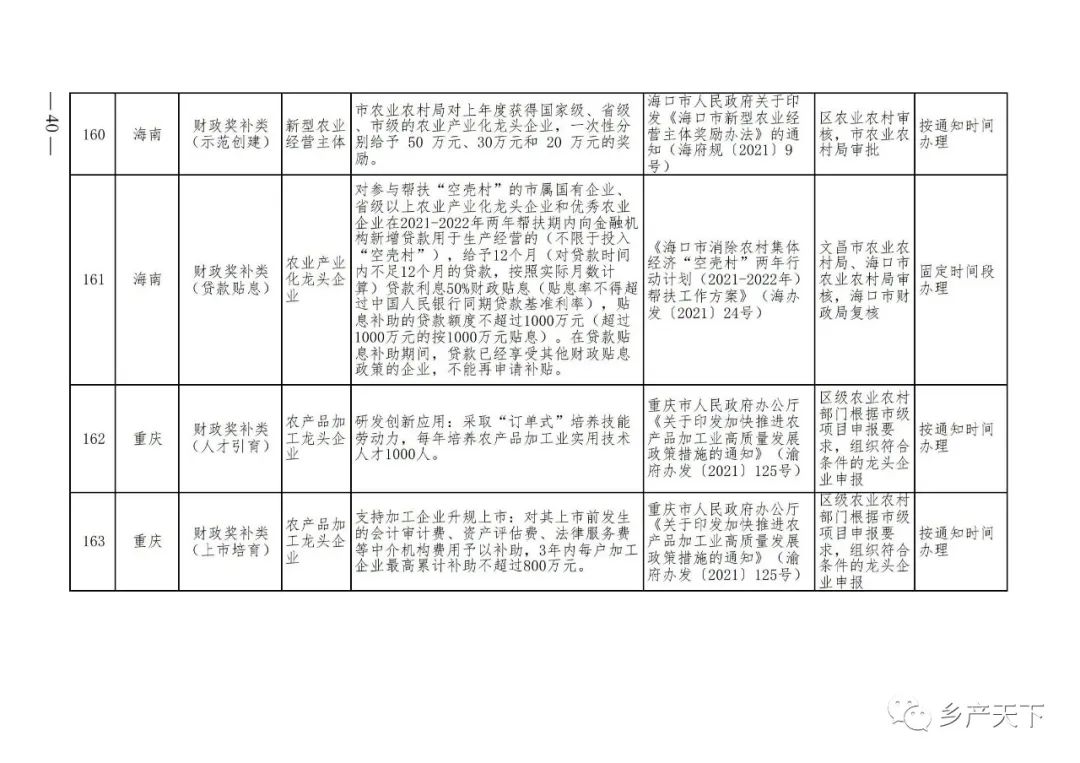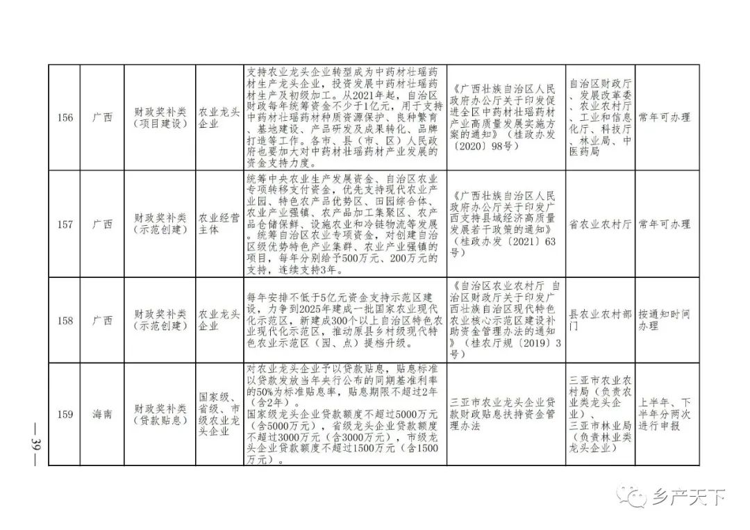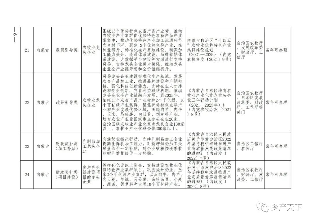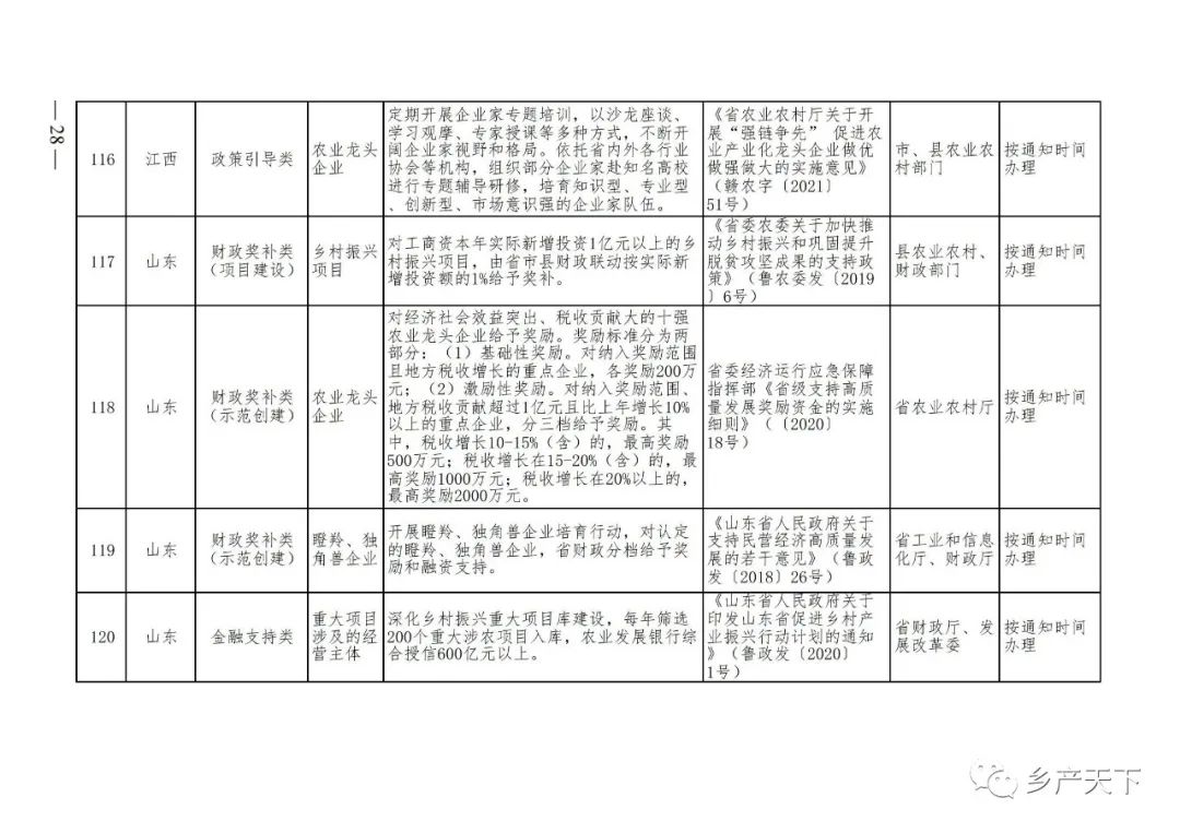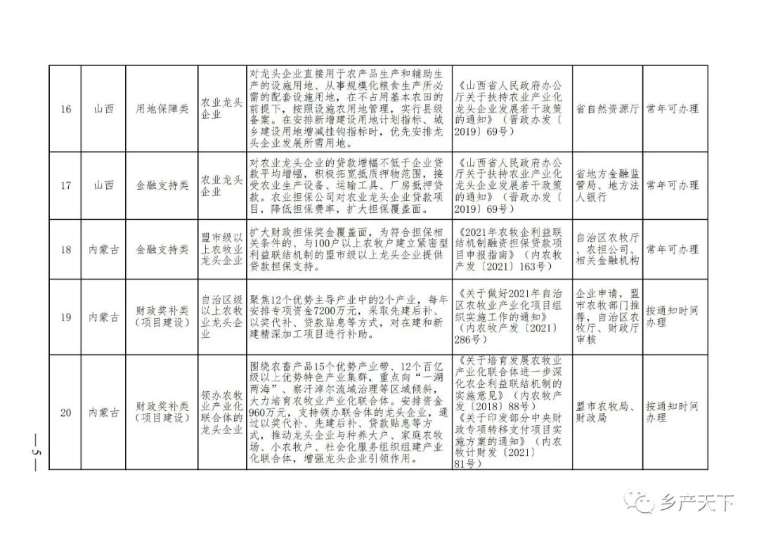 為加強(qiáng)對(duì)農(nóng)業(yè)產(chǎn)業(yè)化龍頭企業(yè)的精準(zhǔn)服務(wù),農(nóng)業(yè)農(nóng)村部鄉(xiāng)村產(chǎn)業(yè)發(fā)展司收集了各省(區(qū)、市)對(duì)龍頭企業(yè)的支持政策,于近期印發(fā)《農(nóng)業(yè)產(chǎn)業(yè)化龍頭企業(yè)支持政策清單》(簡(jiǎn)稱《清單》),供各地互相參考學(xué)習(xí)。