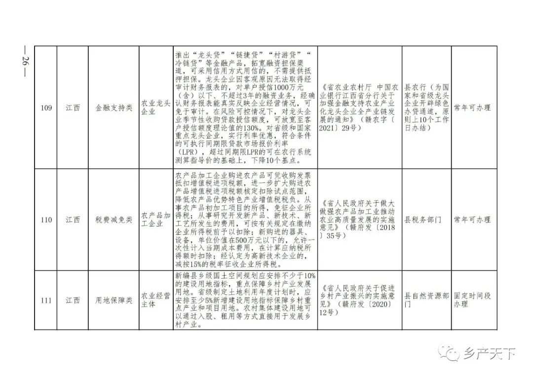 農(nóng)業(yè)產(chǎn)業(yè)化龍頭企業(yè)支持政策清單